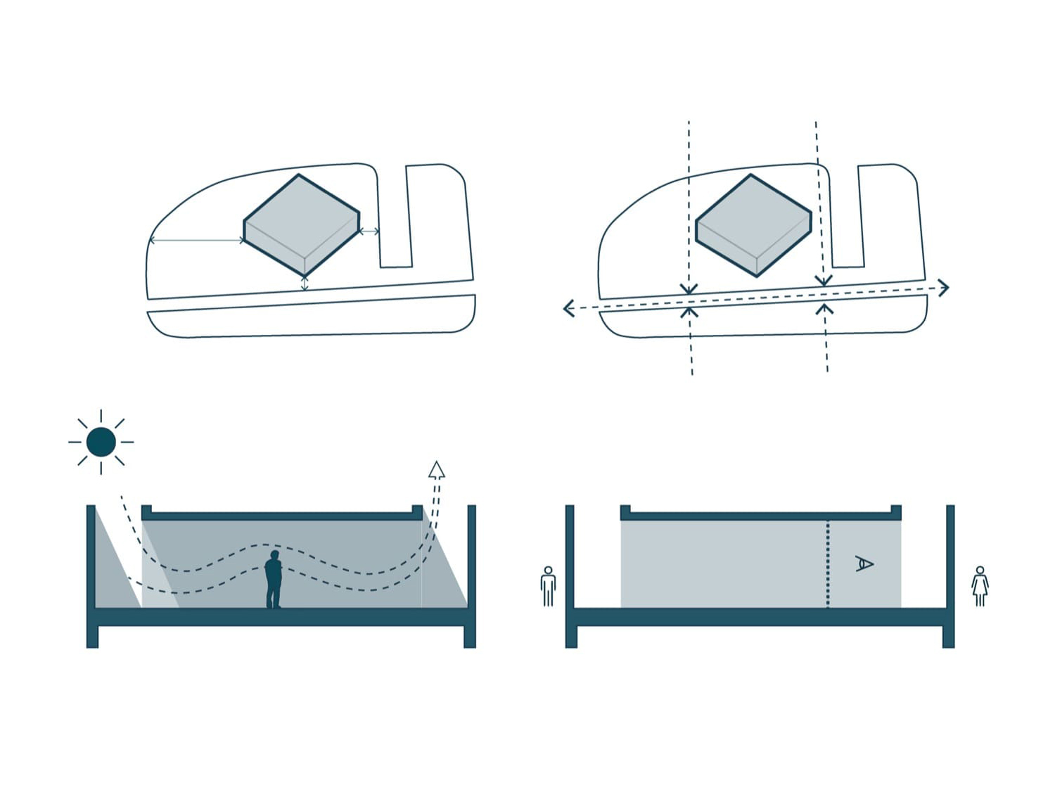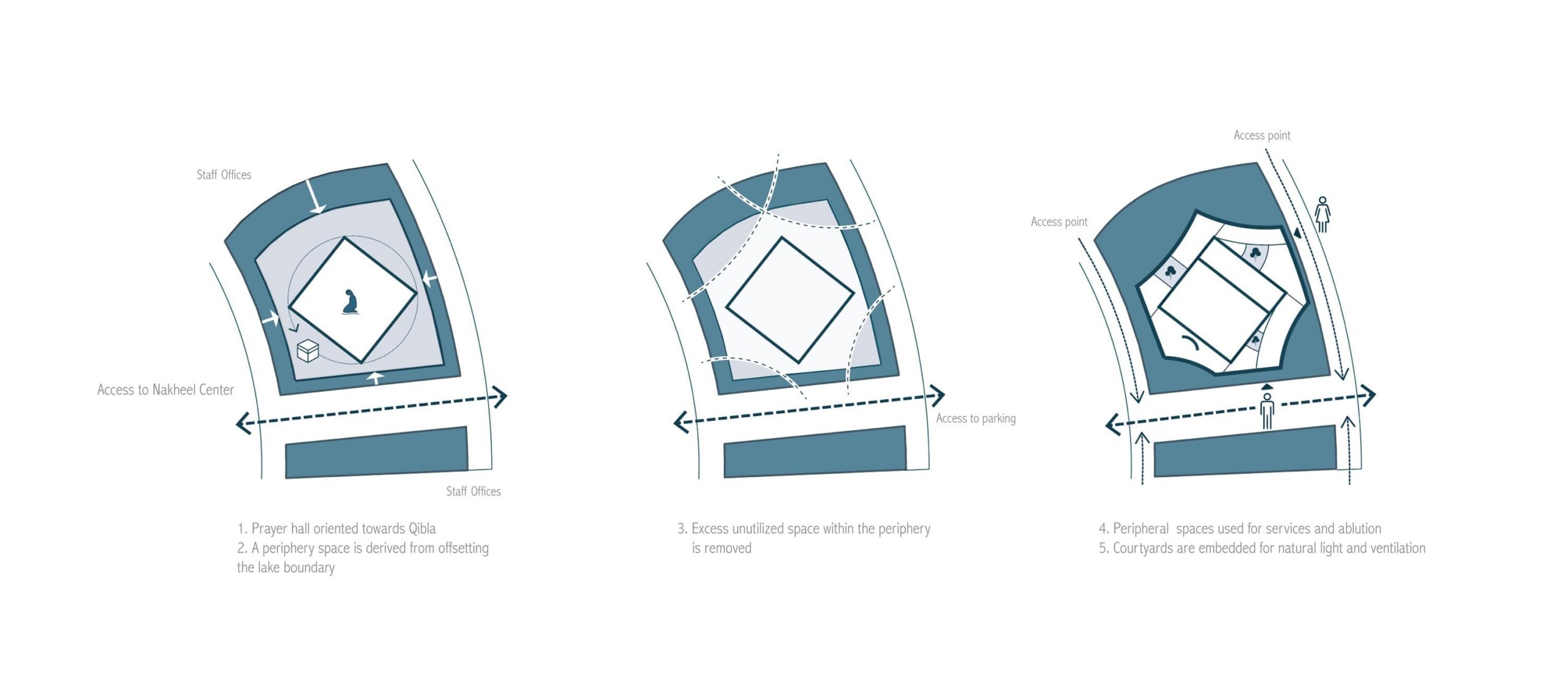 Khushu’ is the word used to describe an act – to bow down, to express humility – but is also a condition of the heart as well as of the body. The architecture of the proposed musalla is humble and pragmatic. Both concepts that are inherently rooted in the principles of Islamic architecture and culture.