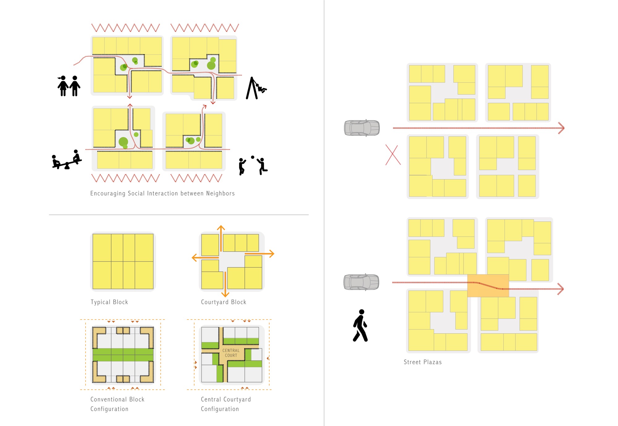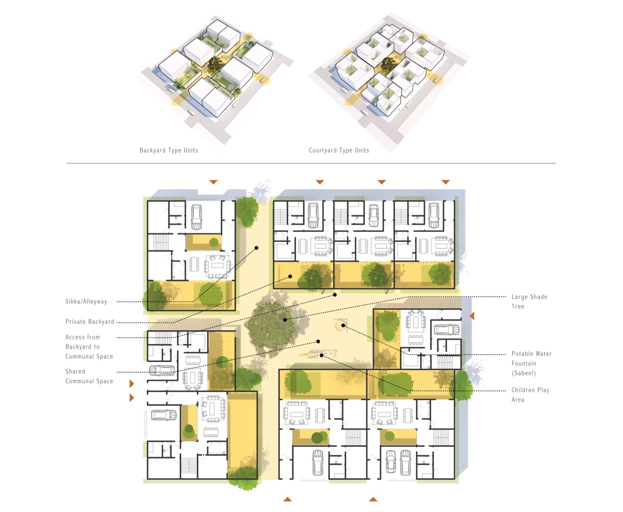 “Fereej” is the Emirati Arabic dialect for Neighborhood – a word that carries significance in the psyche of the native population as it refers to social characteristic that have been lost in modern day developments of residential neighborhoods. This masterplan was proposed for a residential community within the center of the emirate of Sharjah as part of a larger initiative by the local authorities to revive the disparaged neighborhoods in the city center and attract Emirati families who have opted for the suburbs. The masterplan conceived to question the modus operandi of contemporary residential neighborhood planning strategies adopted in the gulf region often deploying uncritical western forms and typologies with disregard to the traditional values of the Emirati fareej.