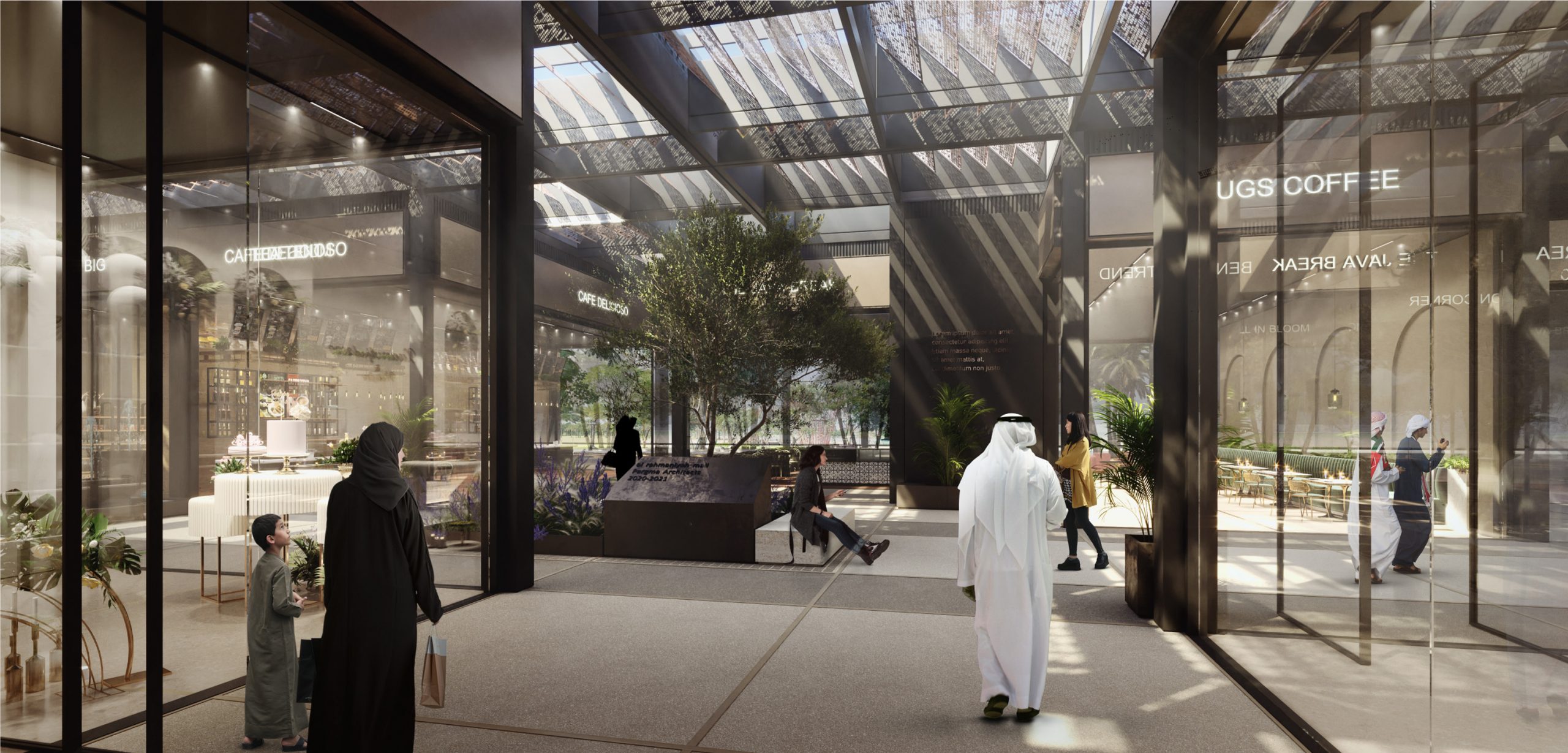 Our objective is to reimagine the concept of the mall within the context of the Gulf region. Pragma’s approach to design presents a contemporary interpretation of the traditional souk archetype. Emphasizing an open, communal, and human-centric space was acknowledge that the purpose of a mall extends beyond mere shopping. “Soukspire” presents an evocative idea that signifies the fusion of traditional marketplace elements (souk) with an elevated architectural aspect (spire). It conveys the idea of a marketplace that incorporates distinctive design elements, reflecting the blending of traditional and contemporary influences.